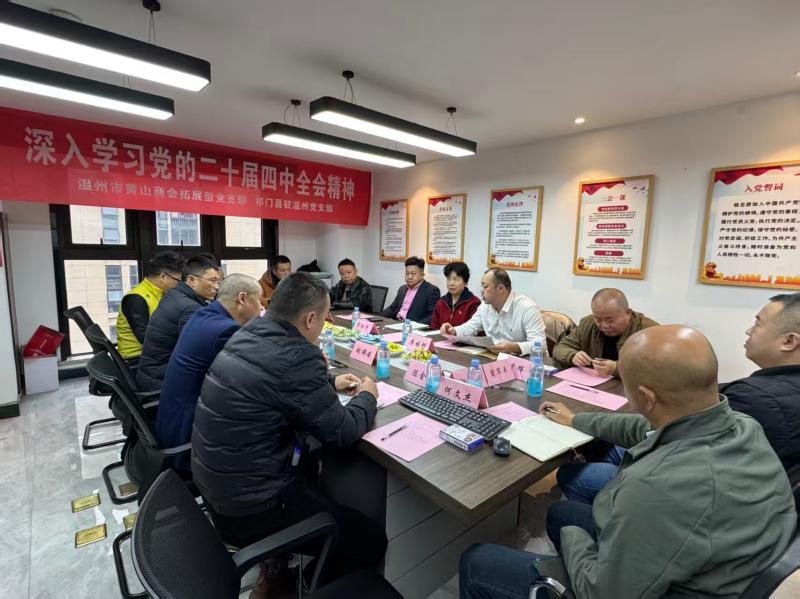 为深入学习贯彻党的二十届四中全会精神,强化党员党性修养,凝聚奋进力量,1月1日下午,祁门驻温州流动党支部联合温州市黄山商会拓展型党支部,召开党的二十届四中全会精神专题学习会。温州市瓯海区关工委副主任宋玲华,温州市安徽商会党支部书记毛士方,支部全体党员、入党积极分子共同参与学习研讨。